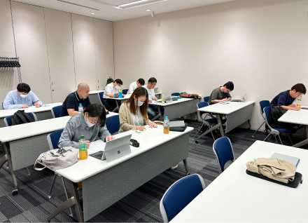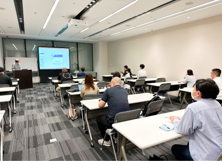 業務に役立つ知識や気になるテーマを持ち寄って、参加者の前で発表します。